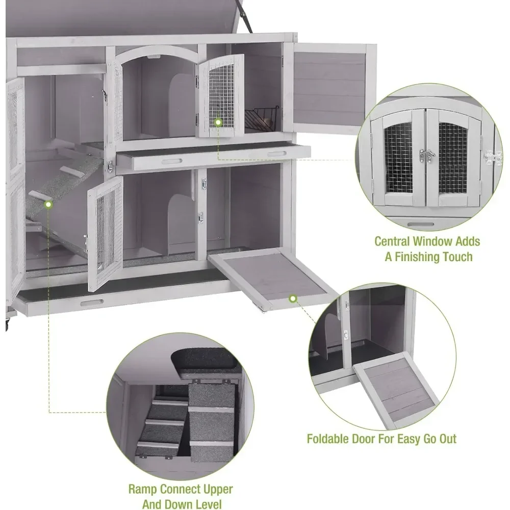 - The stairs and platform allow pets to easily enter the upper and lower cage areas.